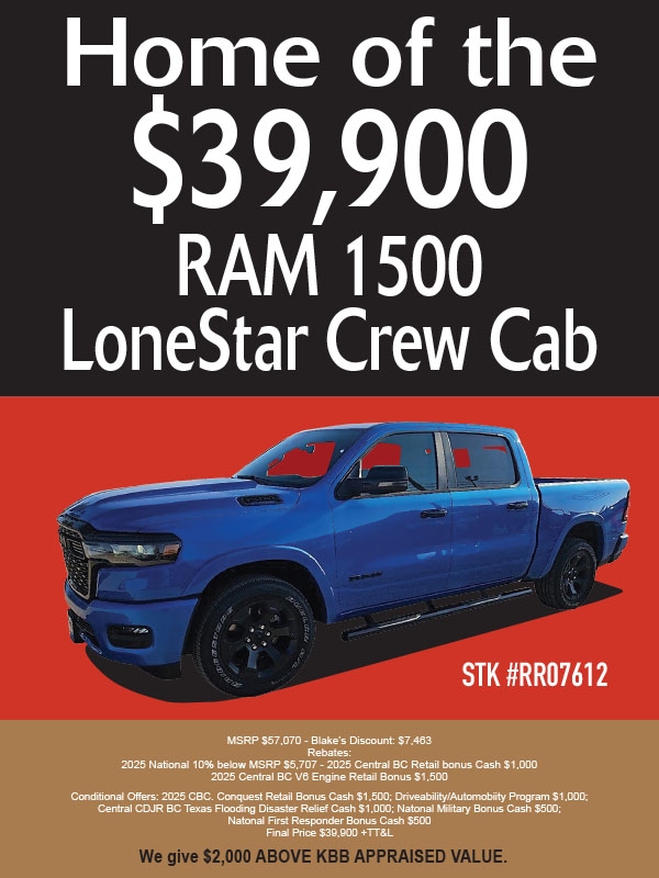 At Blake Fulenwider Chrysler Dodge Jeep RAM, we carry every RAM trim level to match your needs. The RAM 1500 Tradesman offers reliable strength at a great value. The RAM 1500 Laramie adds upscale comfort with leather seating and premium tech. For drivers who want maximum refinement, the RAM 1500 Limited provides luxury finishes and cutting-edge safety. Heavy-duty models like the RAM 2500 and RAM 3500 push capability even further, making them ideal for work and ranch life in West Texas.